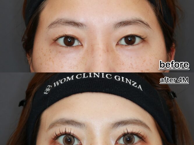 術前は目が開きにくく、眉毛を上げてしまい目と眉の距離が離れていますが、施術後はまぶたのたるみもスッキリし、二重がぱきっとしましたね(^^)