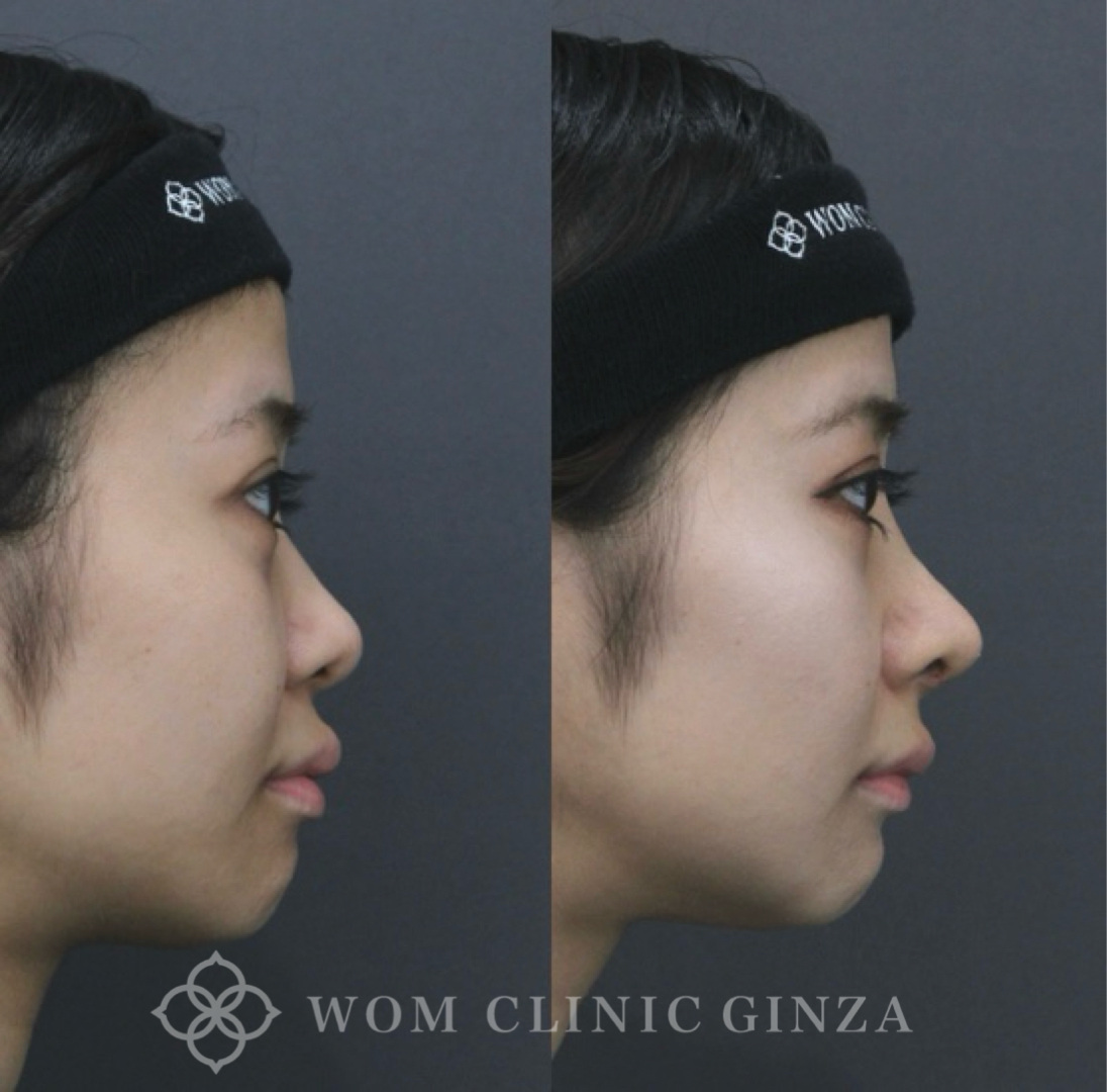 鼻の高さと顔の調和を同時に考え、鼻翼基部や鼻柱基部を補強することで、バランスの取れた横顔に仕上げました。
