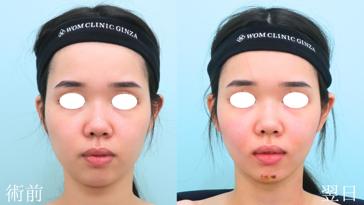 『頬+あご下+ジョールの脂肪吸引・咬筋ボトックス』の術前と術後(翌日)の症例写真『『BMI16』痩せているのに脂肪吸引?』の画像